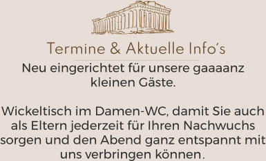 Genießen Sie original griechische Spezialitäten in einem einmaligen Ambiente! Wir entführen Sie in die Geschmackswelt der griechischen Küche und bringen Sie auf den echten Geschmack mediterraner Lebensart – selbstverständlich verwenden wir dabei ausschließlich frische Zutaten und möchten Ihnen stets die bestmögliche Qualität bieten.Mit seiner mediterranen Einrichtung und der mittlerweile schon legendär gewordenen Atmosphäre ist das AKROPOLIS die ideale Location für unvergessliche Feiern im Freundes- und Familienkreis – seien es Geburtstage, Hochzeiten oder andere Anlässe.Wir haben immer ein offenes Ohr für Ihre Wünsche, welche wir in enger Absprache gern mit Ihnen umsetzen.